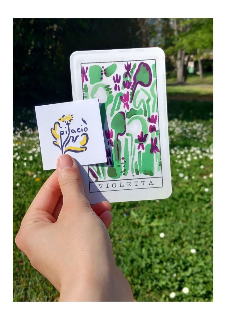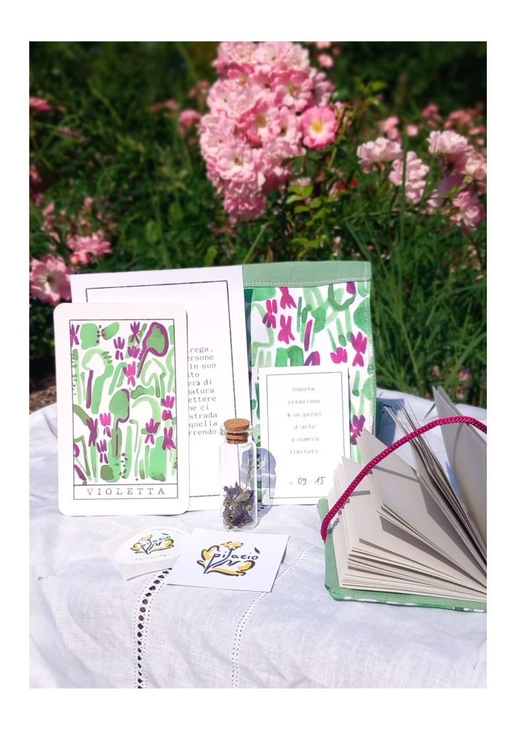 -una carta di tarocco accompagnata da un messaggio ispirato al fiore protagonista,